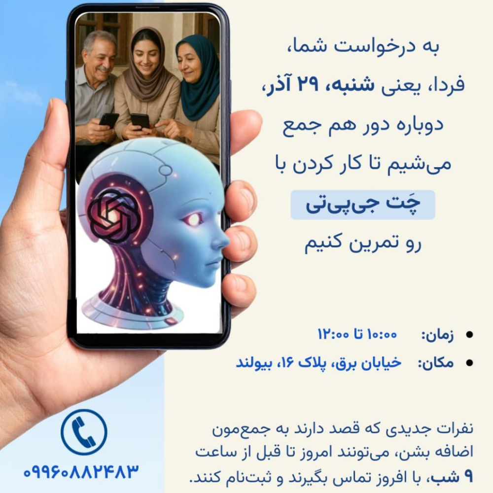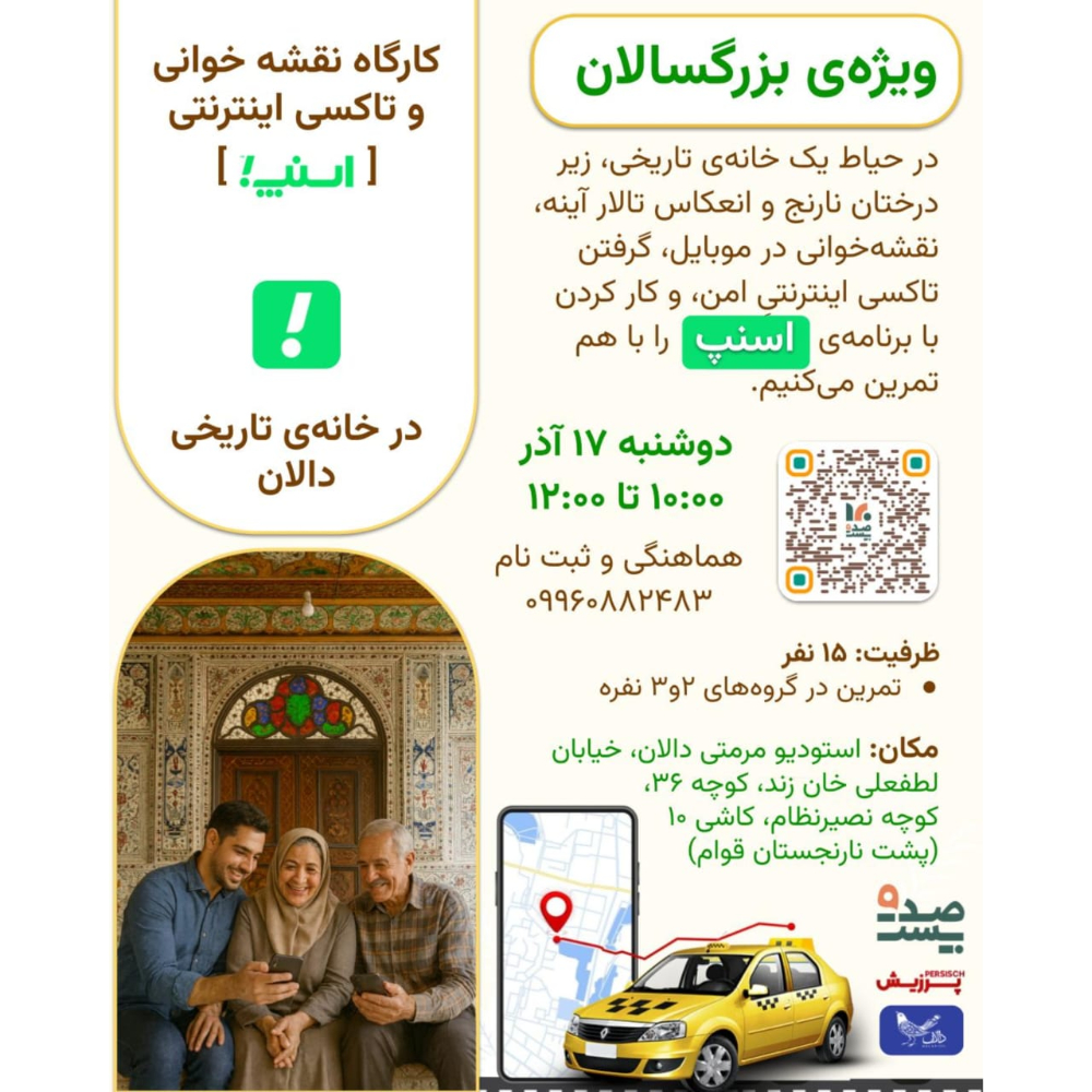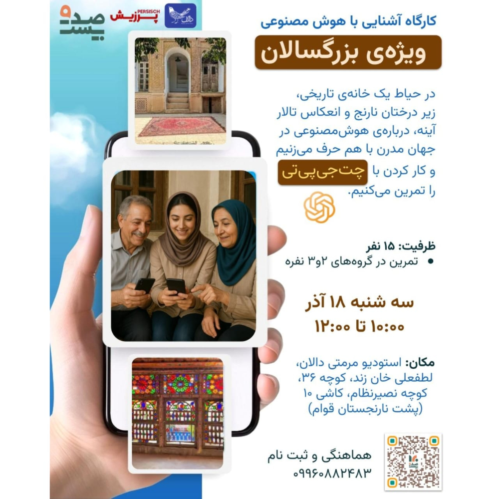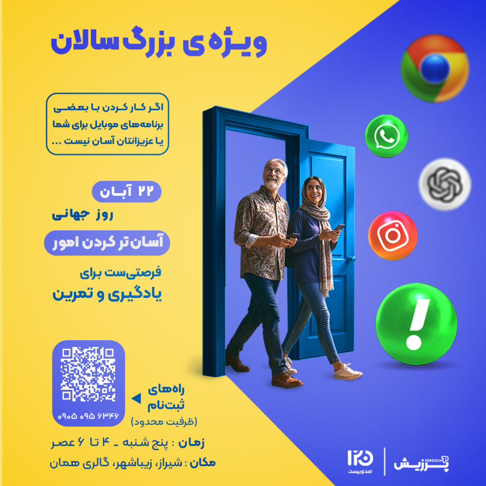 در این برنامه، هم دربارهی چالشهای زندگی بزرگسالان و سالمندان در عصر دیجیتال گفتوگو میکنیم، و هم با آموزش و تمرینهای عملی، کار با برنامههای موبایل و خدمات اینترنتی پرکاربرد را یاد میگیریم.